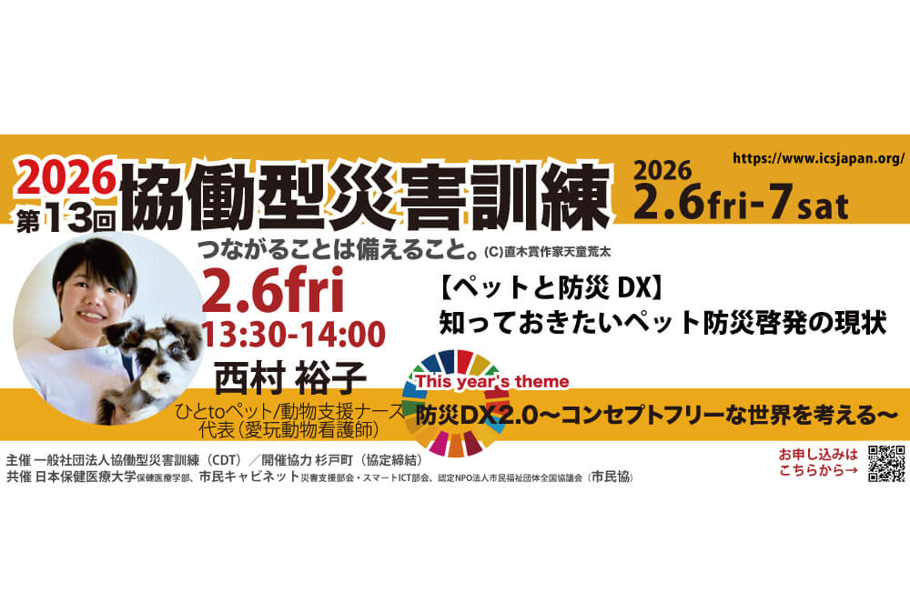 2014年国土交通省「広域的地域間共助推進事業」としてスタートし、「これまでの震災の経験と教訓を、来るべき大規模災害に活かすこと」をモットーに毎年開催を重ねている一般社団法人協働型災害訓練(本社:埼玉県東松山市、代表理事:とよしま亮介)は、2026年2月6日(金)・7日(土)に開催される「第13回協働型災害訓練in杉戸」において、埼玉大学の瀬山紀子氏を招き、シンポジウム「障害と災害 ―東日本大震災以降の動きを中心に―」を開催いたします。
