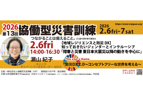 2014年国土交通省「広域的地域間共助推進事業」としてスタートし、「これまでの震災の経験と教訓を、来るべき大規模災害に活かすこと」をモットーに毎年開催を重ねている一般社団法人協働型災害訓練(本社:埼玉県東松山市、代表理事:とよしま亮介)は、2026年2月6日(土)・7日(日)に開催する「第12回協働型災害訓練in杉戸」において、立正大学社会福祉学部准教授の白神晃子氏を招き、「インクルーシブ防災と近助の力:現行制度の基本と当事者支援の実際」と題した特別講演および事例紹介を実施いたします。