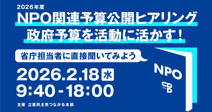続きを読む 【2/18】2026年度NPO関連予算公開ヒアリングのご案内