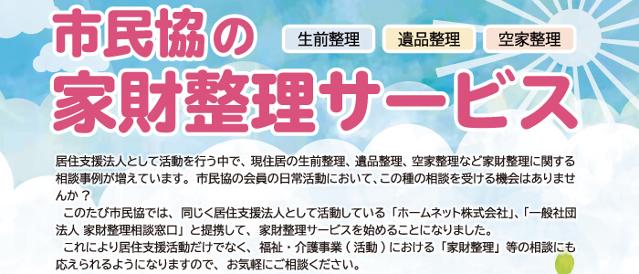 市民協では、全国展開をしている「ホームネット株式会社」と提携して、家財整理サービスを始めることになりました。